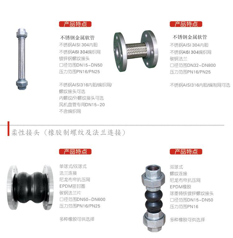 柔性接頭(不鏽(xiù)鋼制螺紋及法(fǎ)蘭連接)